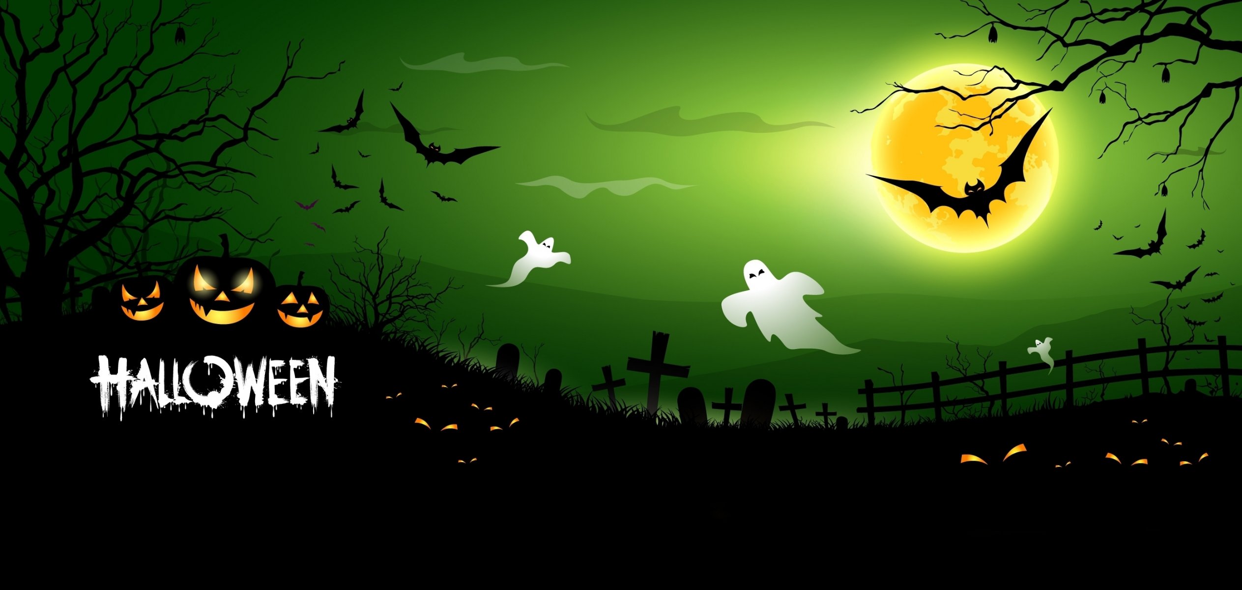 Pipistrelli e fantasmi nella luna piena sopra il cimitero