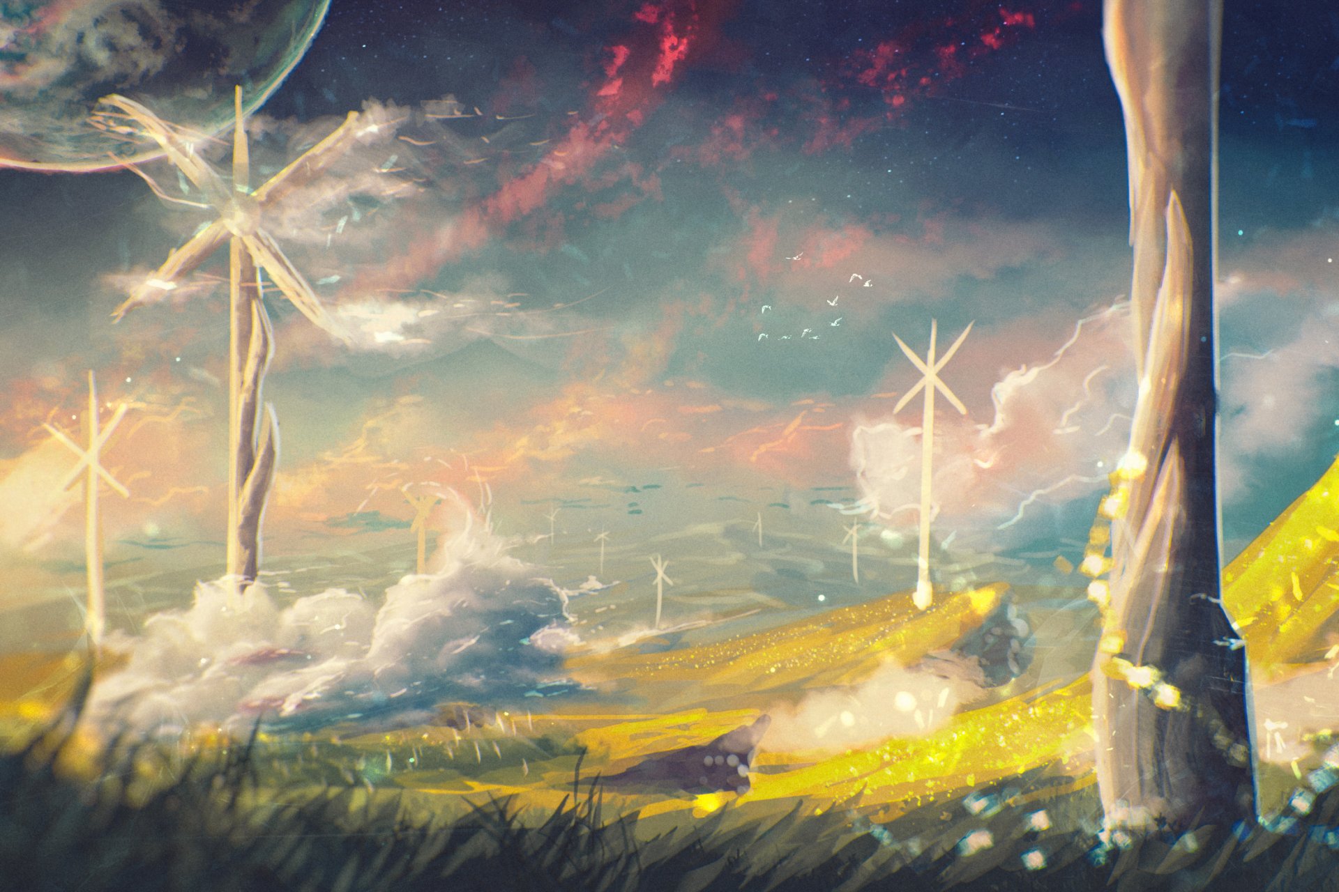 Mulini a vento favolosi nel campo
