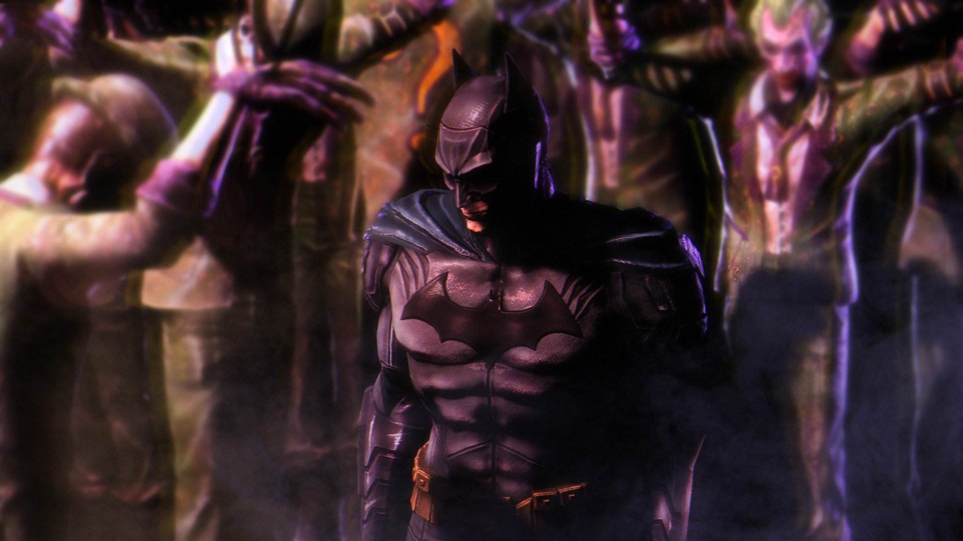Batman in piedi tra i tanti Jolly