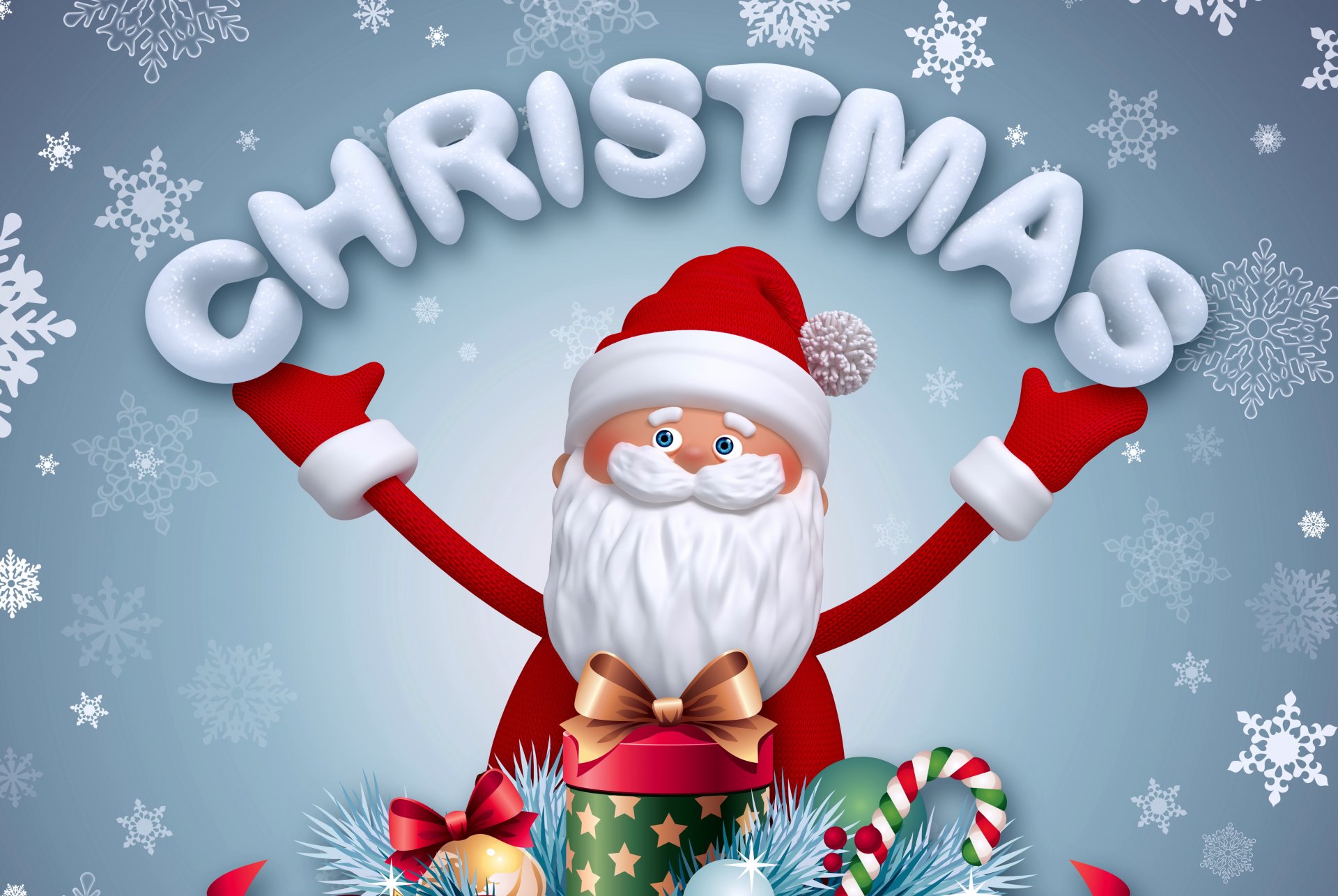Babbo Natale e la fanciulla di neve sotto l'albero di Natale a Capodanno