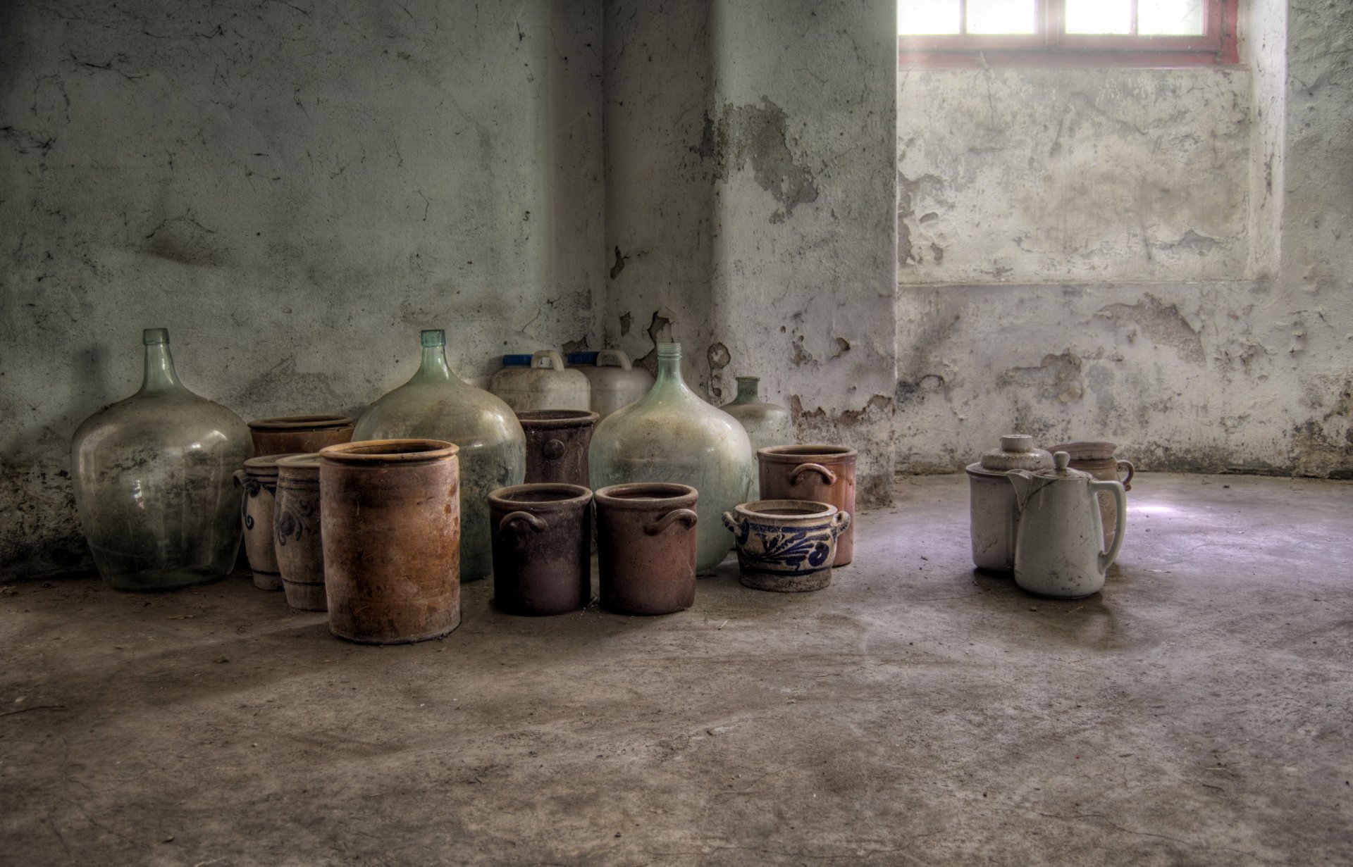 Cucina luminosa con stoviglie colorate e piastrelle colorate sul muro