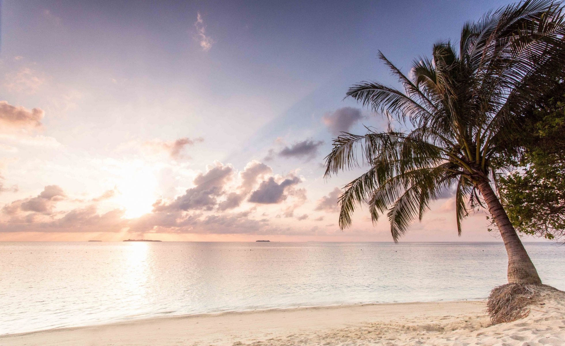 Lontano dalla riva sul mare blu galleggia una barca e solo una vela bianca è visibile
