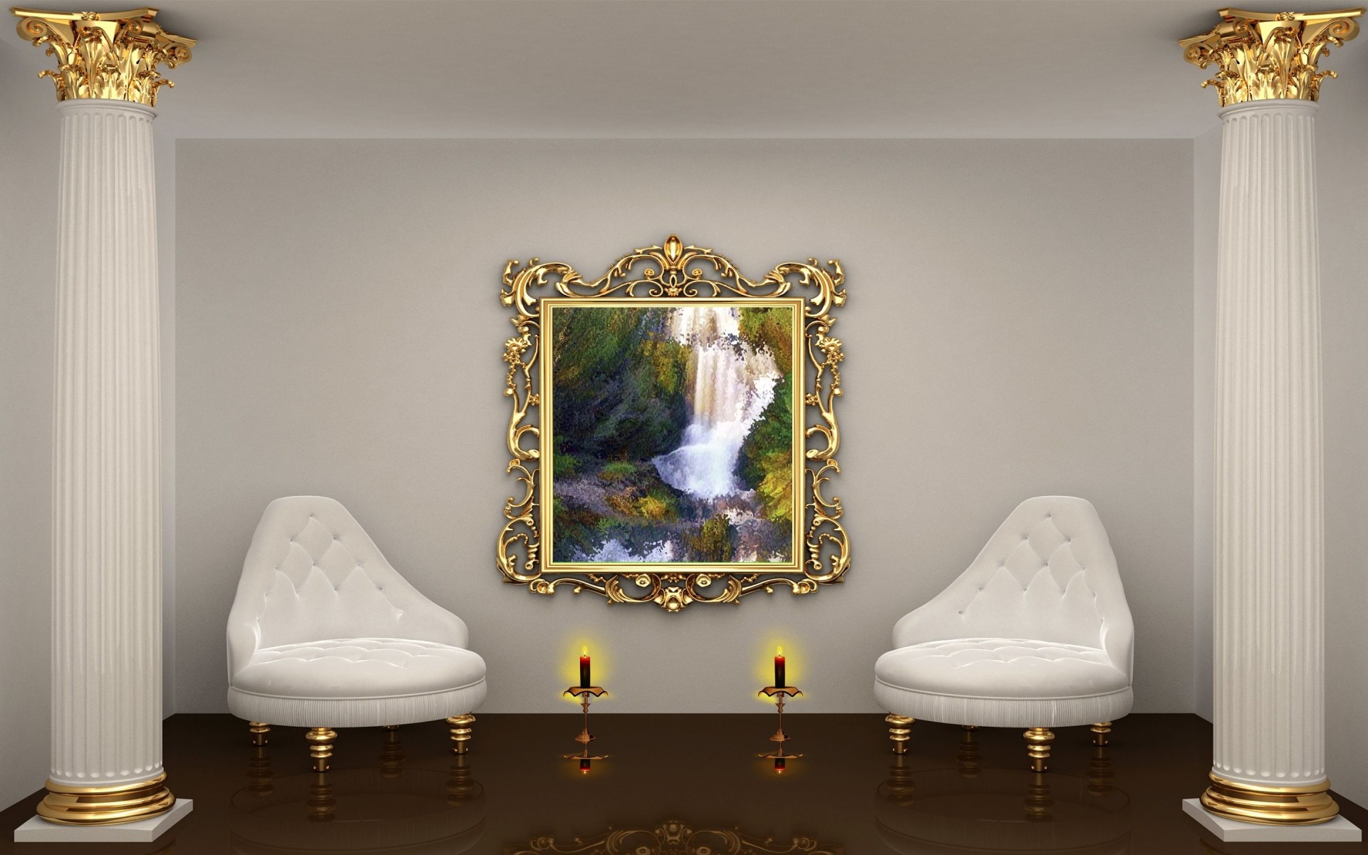 Pittura con intagli d'oro sul muro
