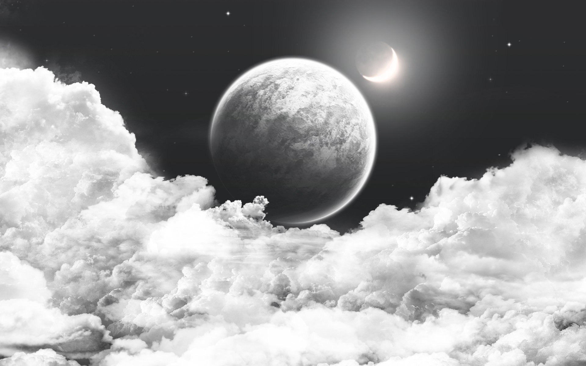 Maestose nuvole nel cielo, e la foresta verde sulle colline