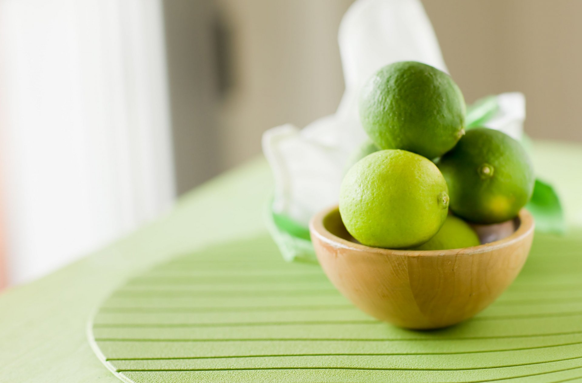 Lime verde in un piatto su un supporto verde