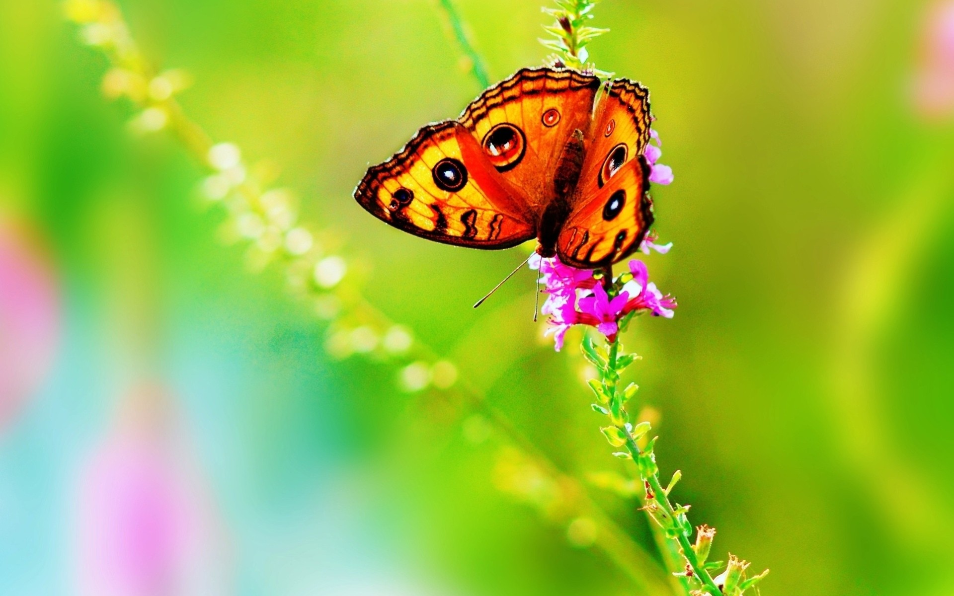 Farfalla luminosa sul fiore