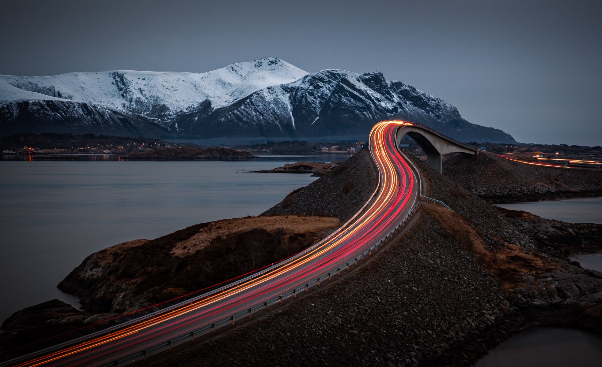 Una lunga vecchia scala in legno con ringhiera si estende attraverso la cima della montagna