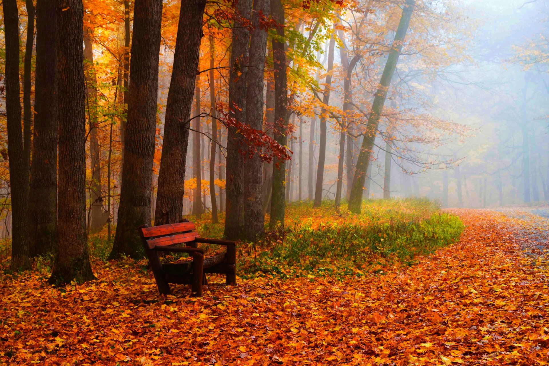 Riflesso della calma in una pozzanghera vicino a una panchina del Parco dopo la pioggia