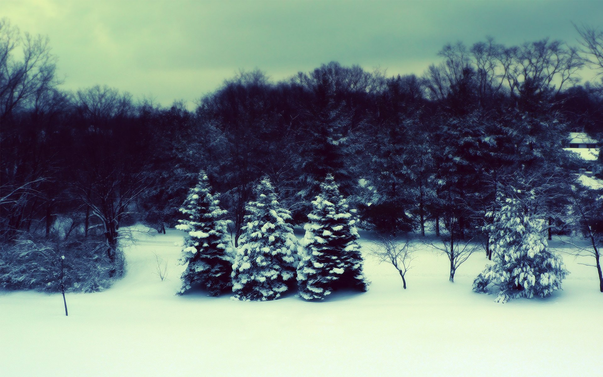 La foresta invernale è ricoperta da uno strato uniforme di neve
