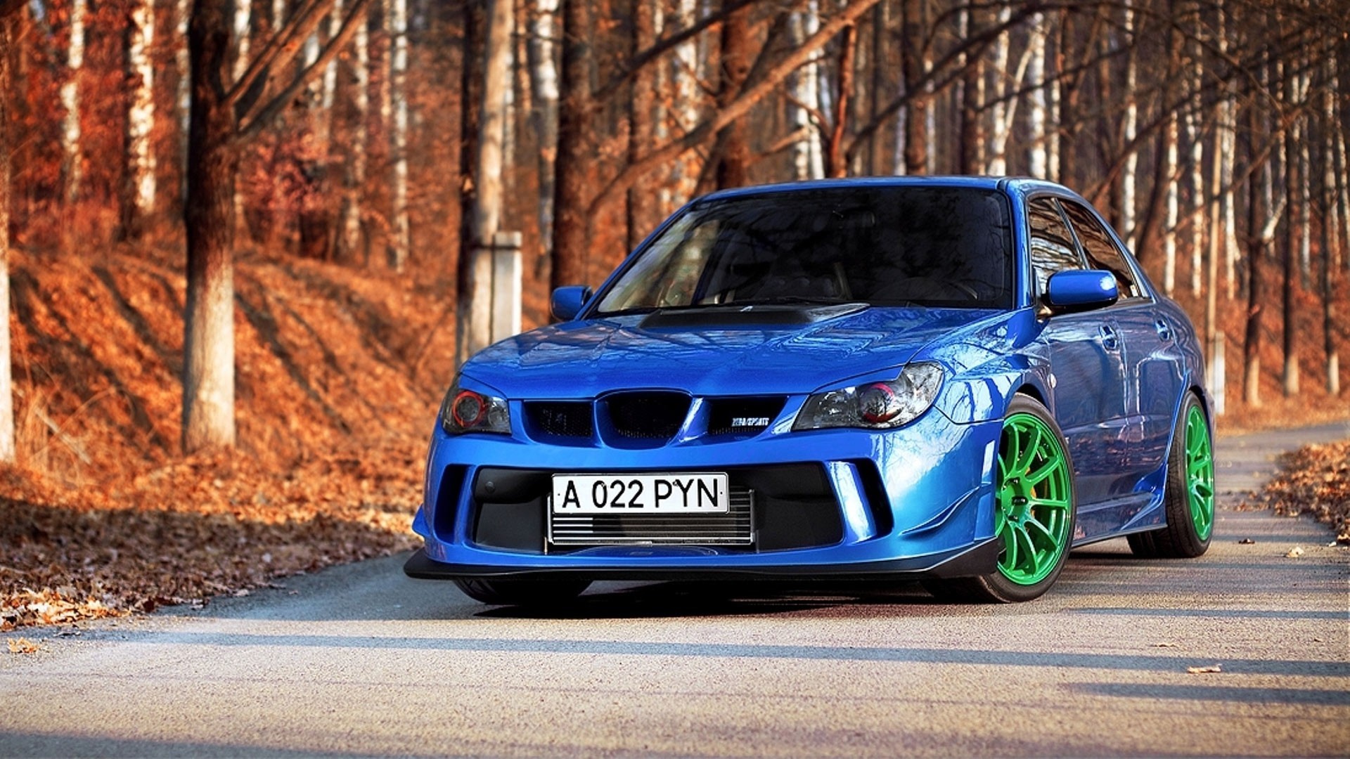 Auto Subaru Impreza sulla strada d'autunno