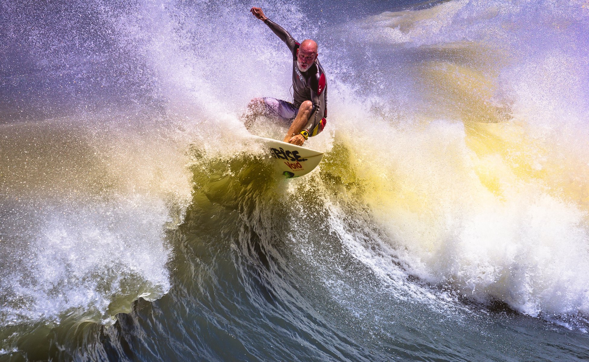 L'uomo sul surf punisce l'onda