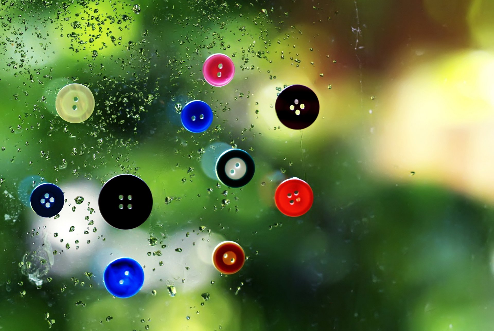 Bottoni colorati su uno sfondo di gocce di pioggia