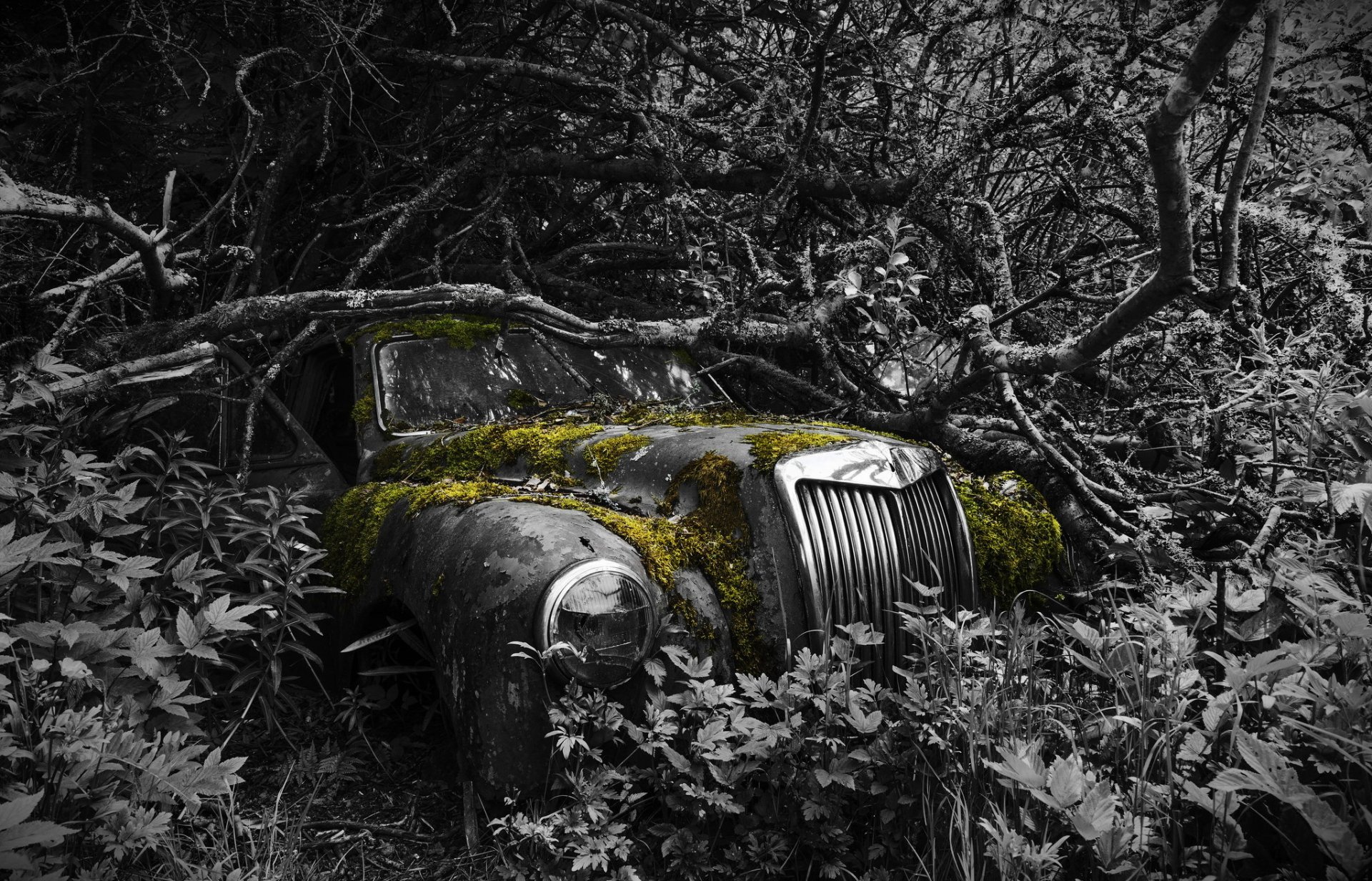 Vecchia signora dimenticata coperta di muschio