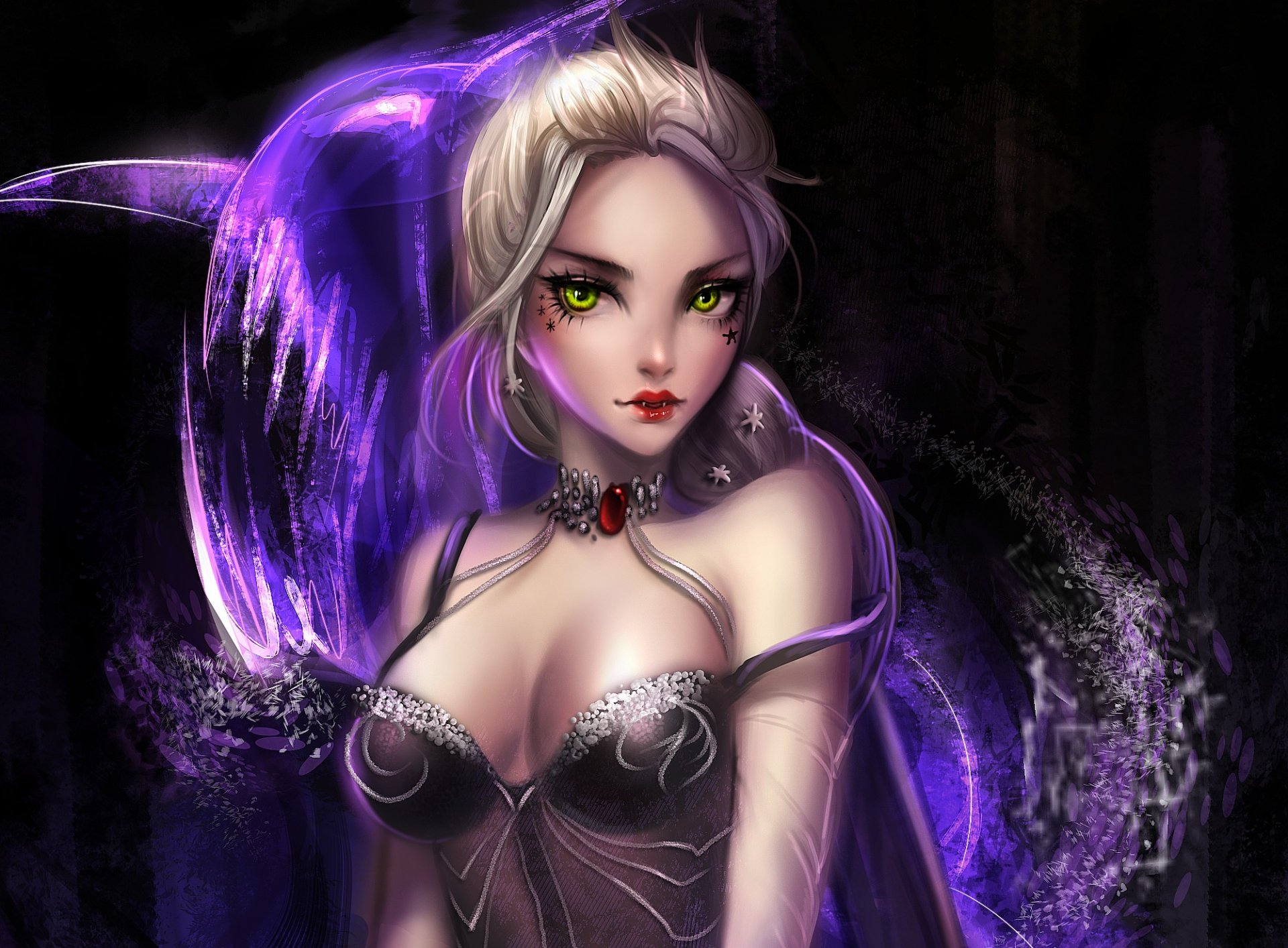 Bella foto di una ragazza in un vestito con i capelli bianchi nella foresta