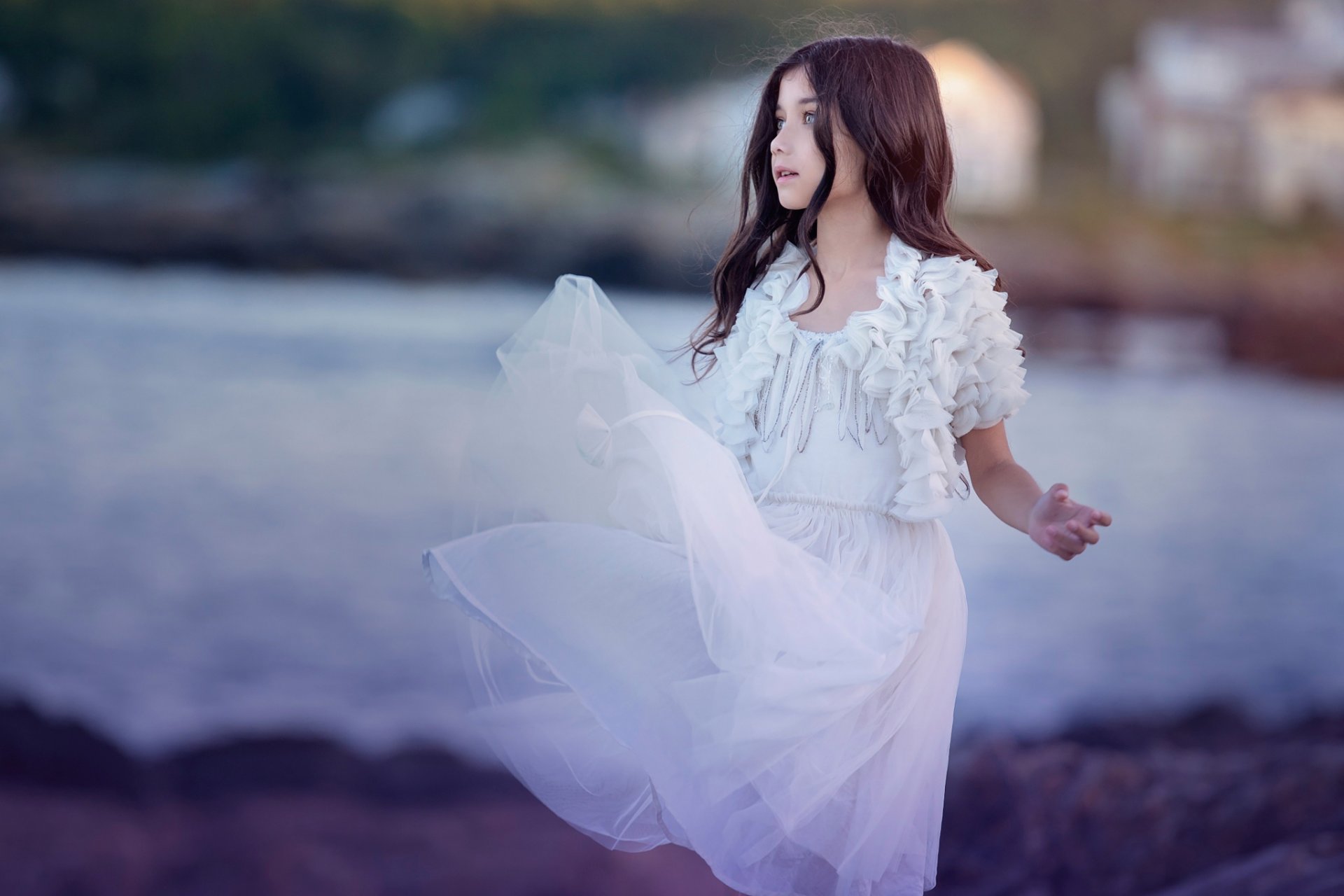 Ragazza che gira in un bel vestito bianco