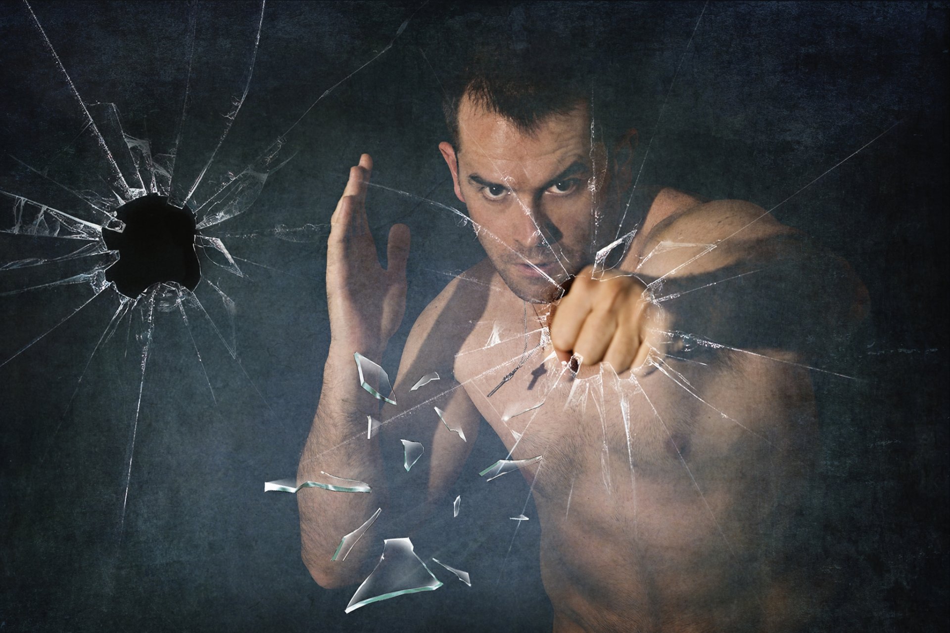 Ragazzo rompe il vetro con i pugni