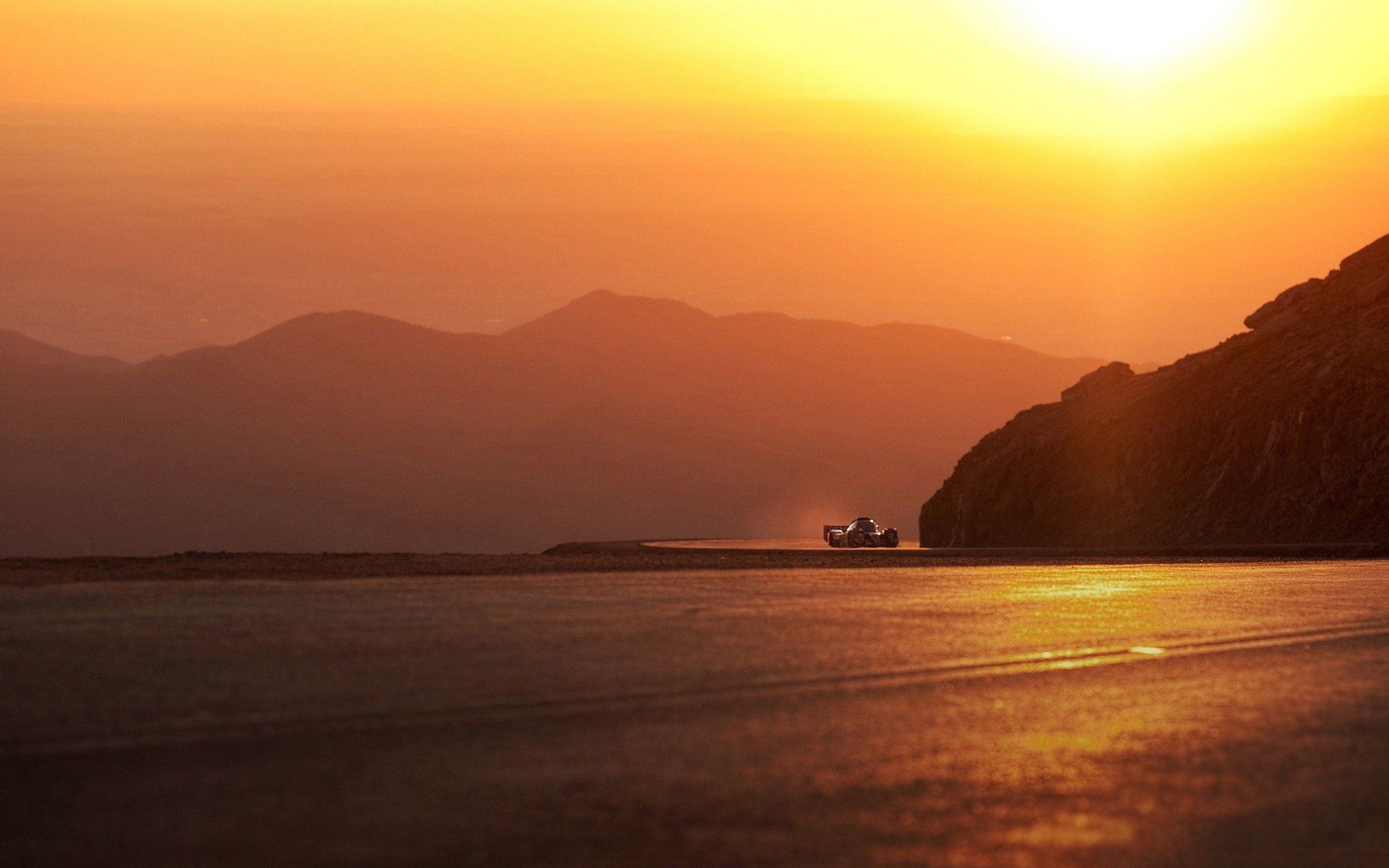 Ragazza con i capelli bianchi in abito blu in posa su uno sfondo di rovine nel deserto