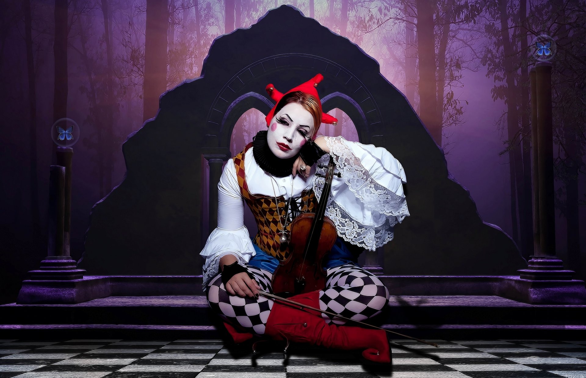 Ragazza alta fino al ginocchio in un ruscello che suona il violino