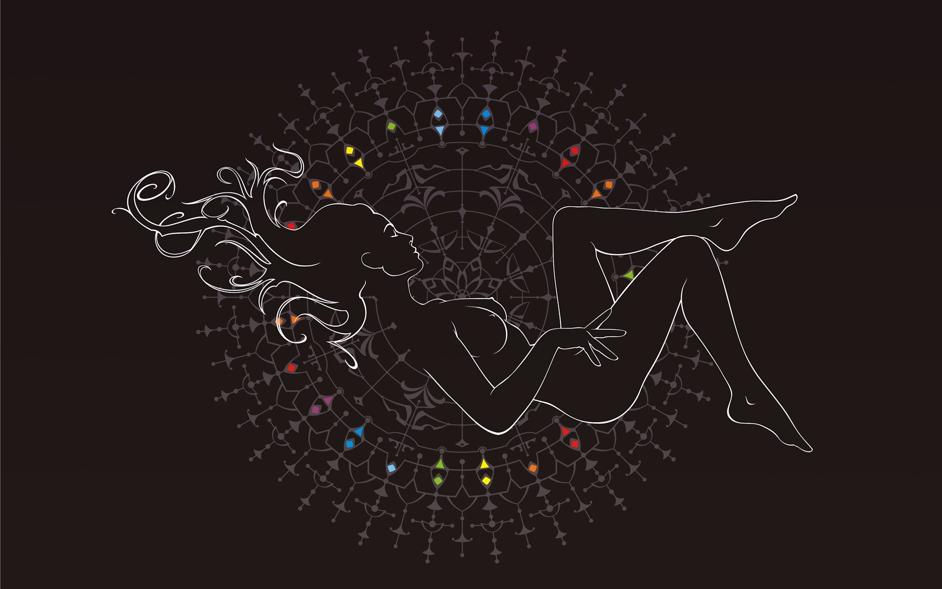 Figura. Una ragazza con una giacca con cappuccio se ne va con una valigia. Sfondo verde. Monocromo