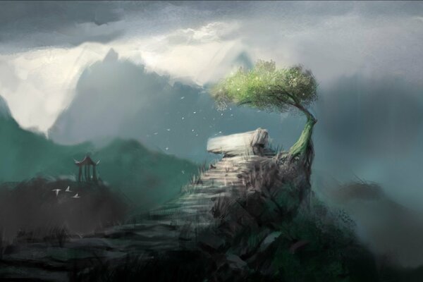 Albero storto sulla cima della montagna