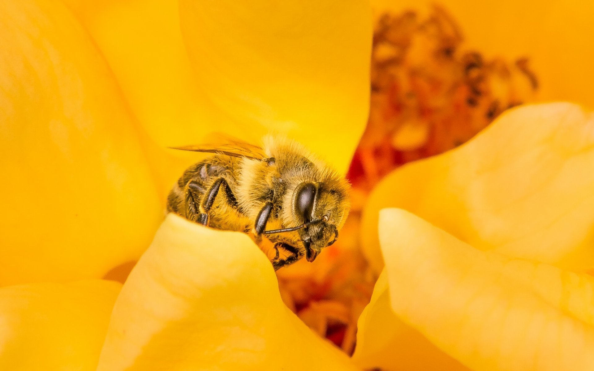 Fotografia macro della fauna selvatica-l'ape raccoglie il nettareFotografia macro della fauna selvatica-l'ape raccoglie il nettare