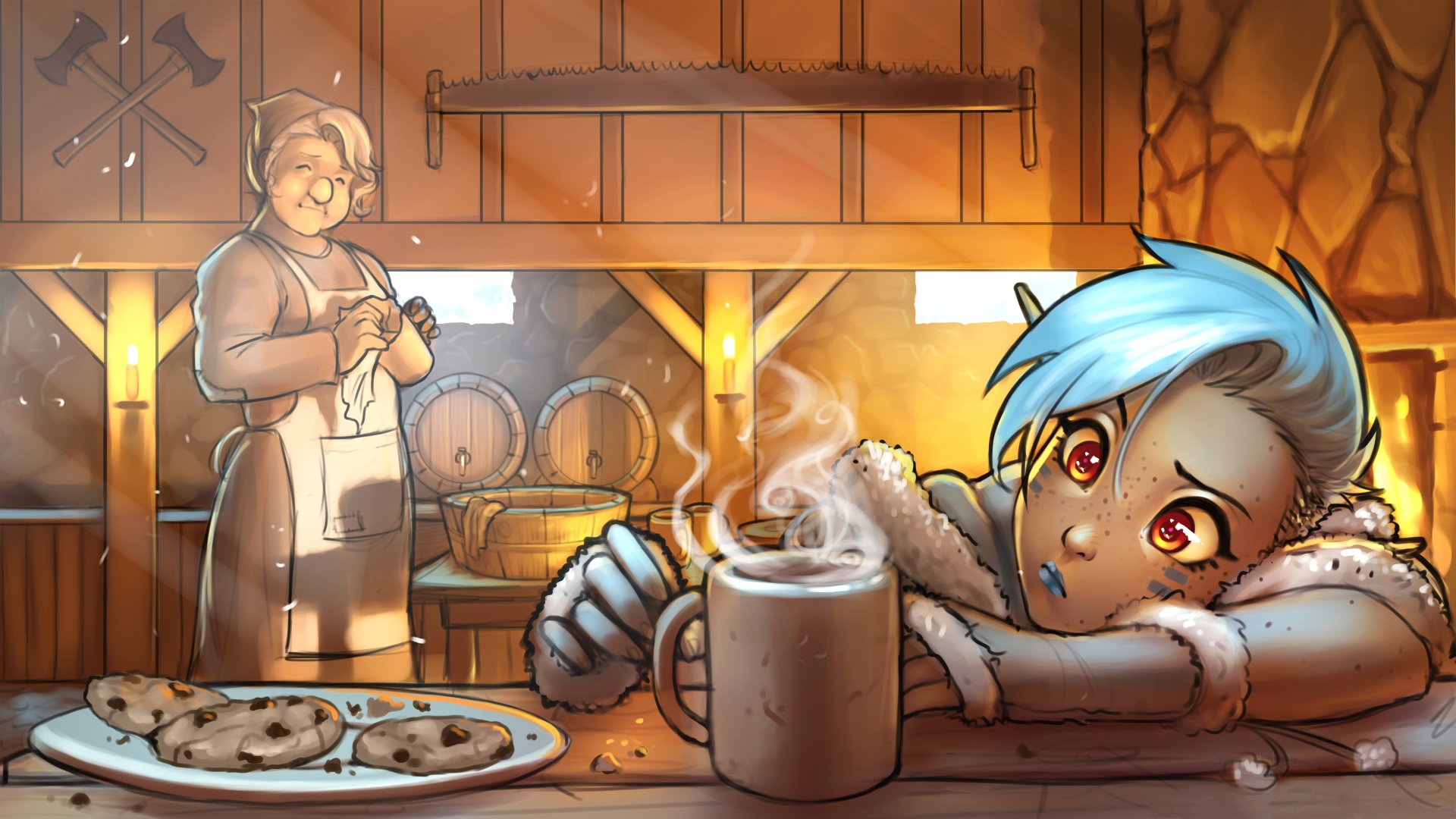 Arte ragazza elfo in taverna