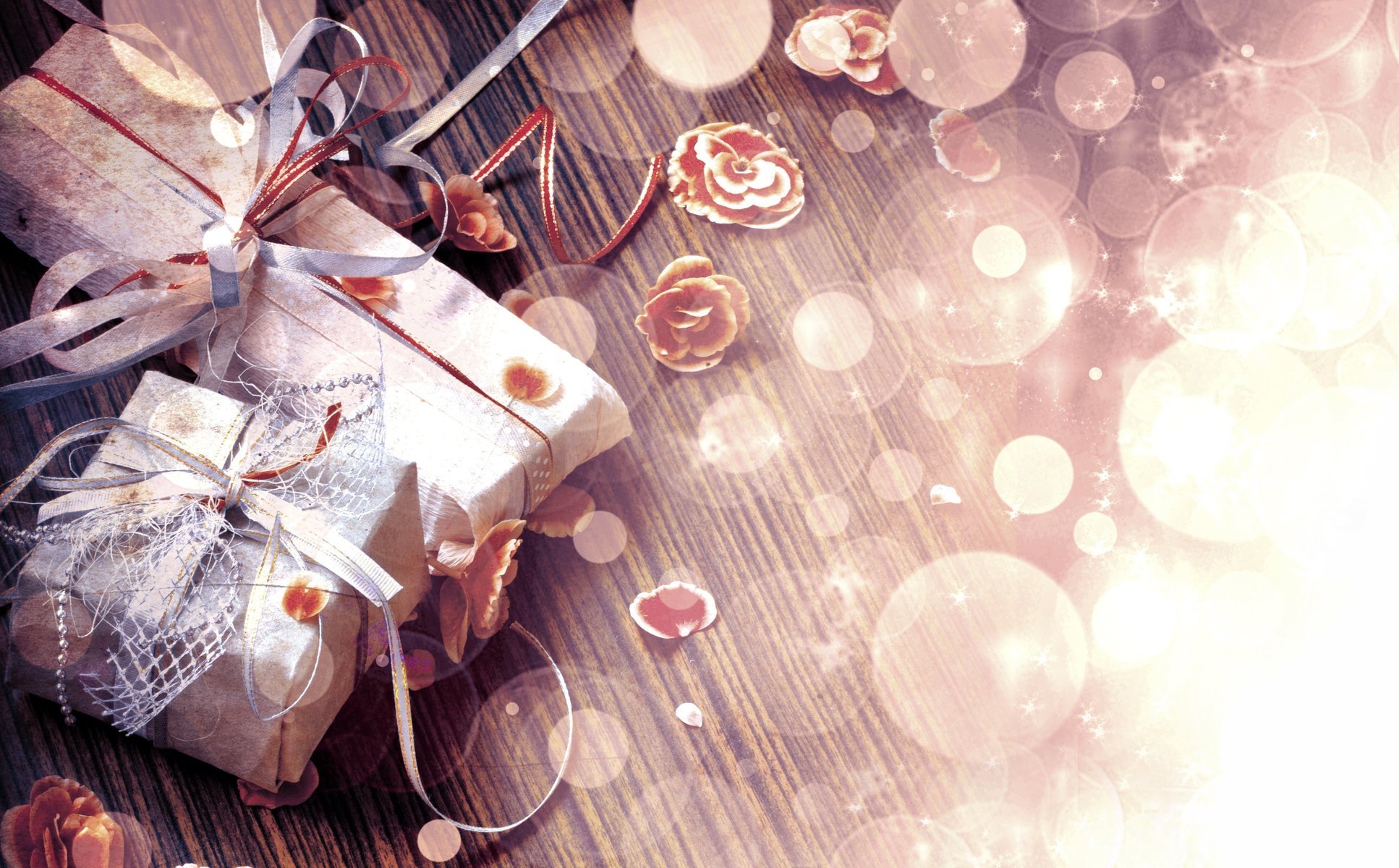 Due scatole regalo di dimensioni diverse tra i fioriDue scatole regalo di dimensioni diverse tra i fiori
