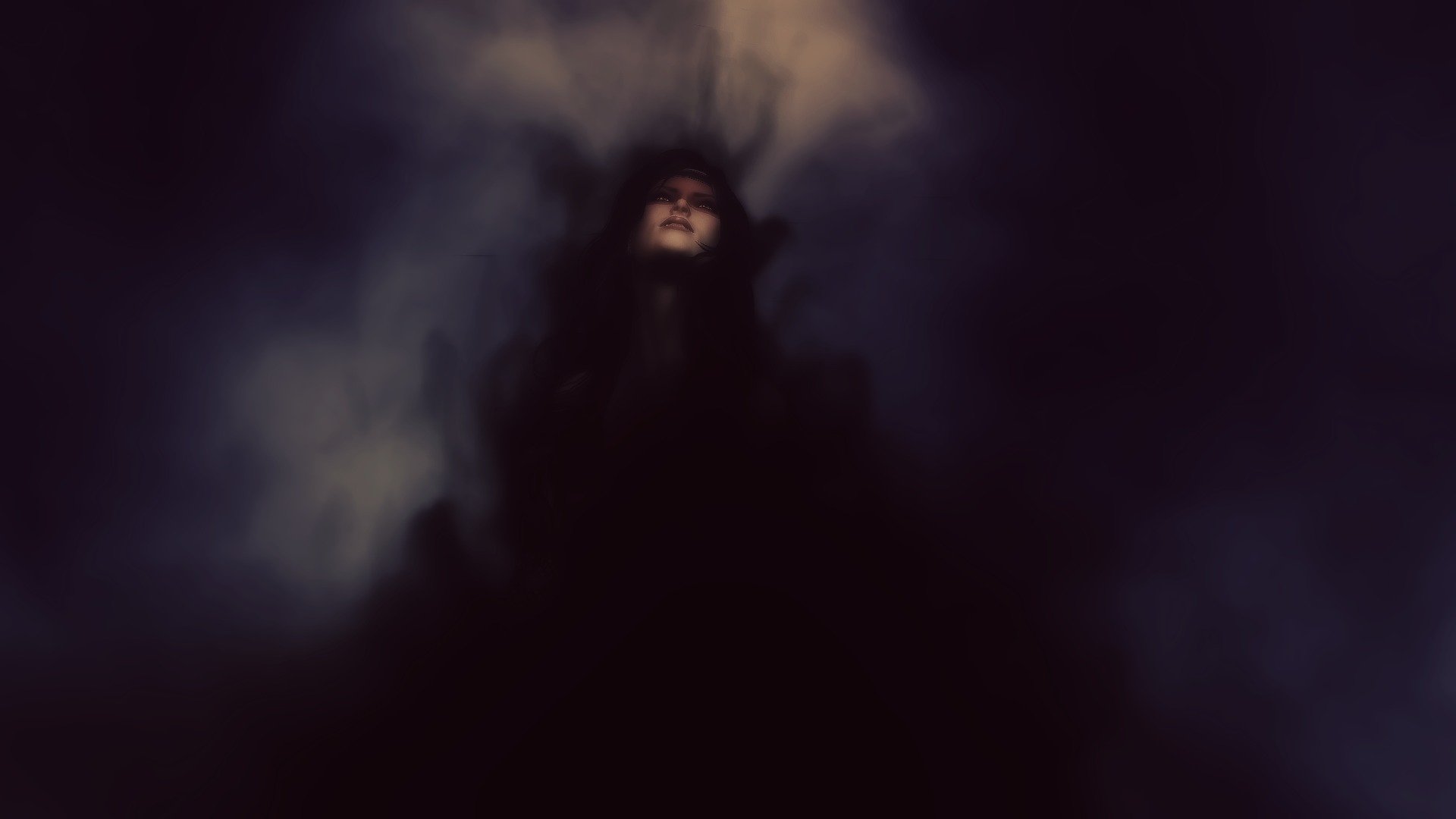 Personaggio del gioco sullo sfondo di una cupa città notturnaPersonaggio del gioco sullo sfondo di una cupa città notturna