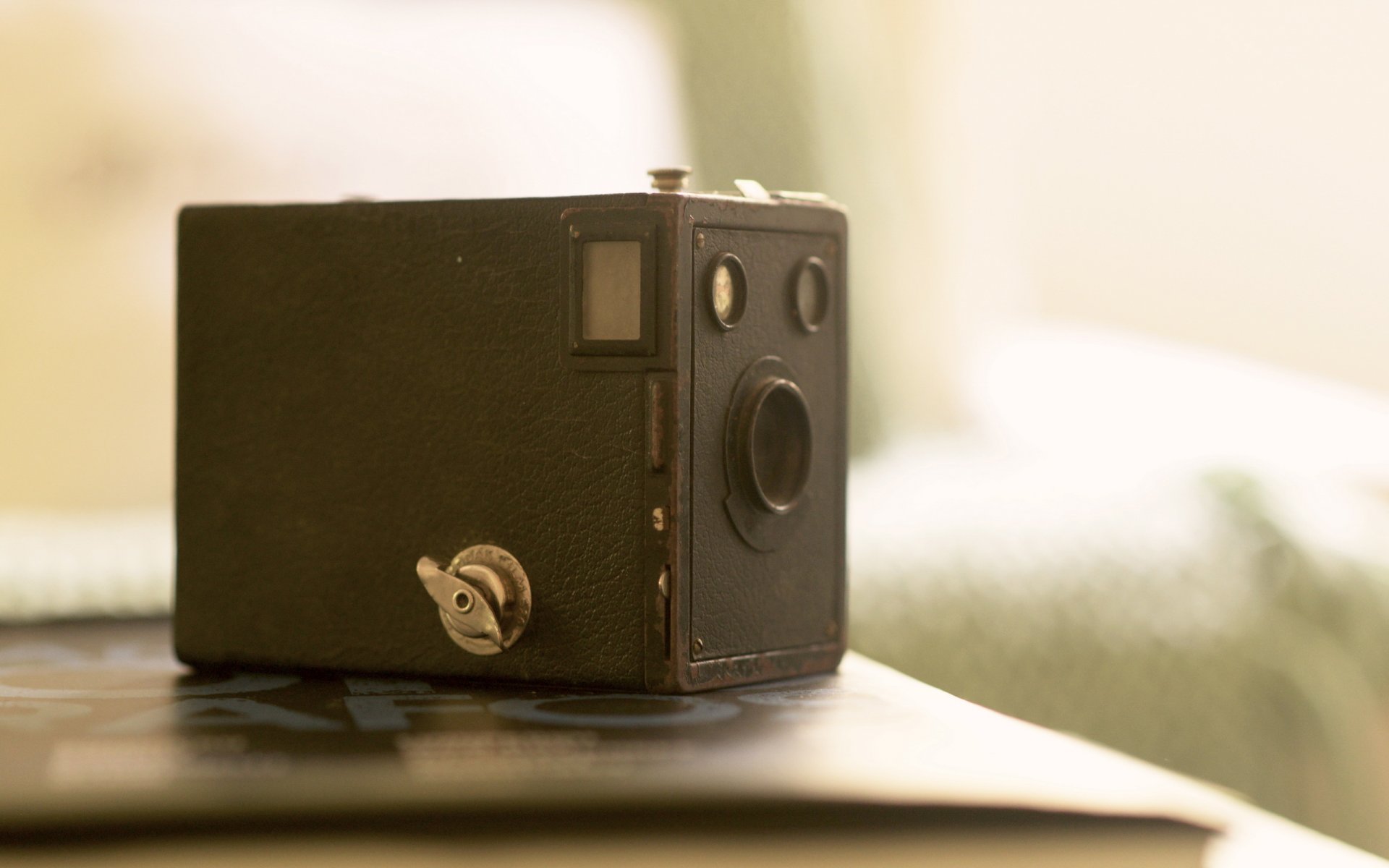 Macchina fotografica nera che si trova su tessuto di cuoioMacchina fotografica nera che si trova su tessuto di cuoio
