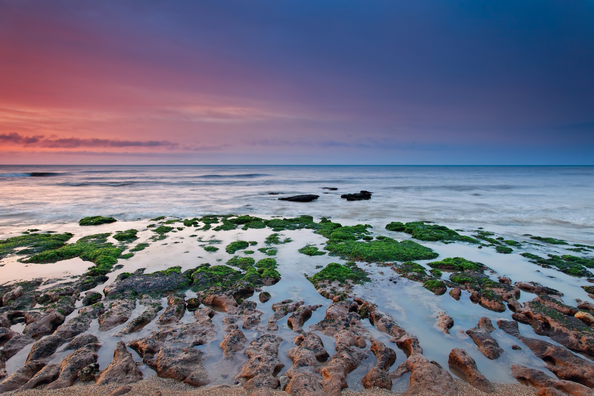 Cielo dipinto in diversi colori e barriere coralline nel mareCielo dipinto in diversi colori e barriere coralline nel mare
