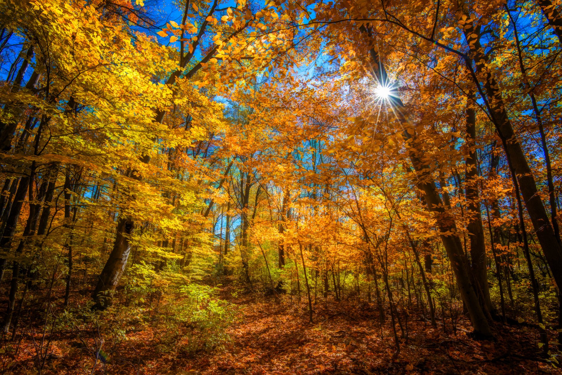 Sentiero nella foresta, luce alla fine del sentiero