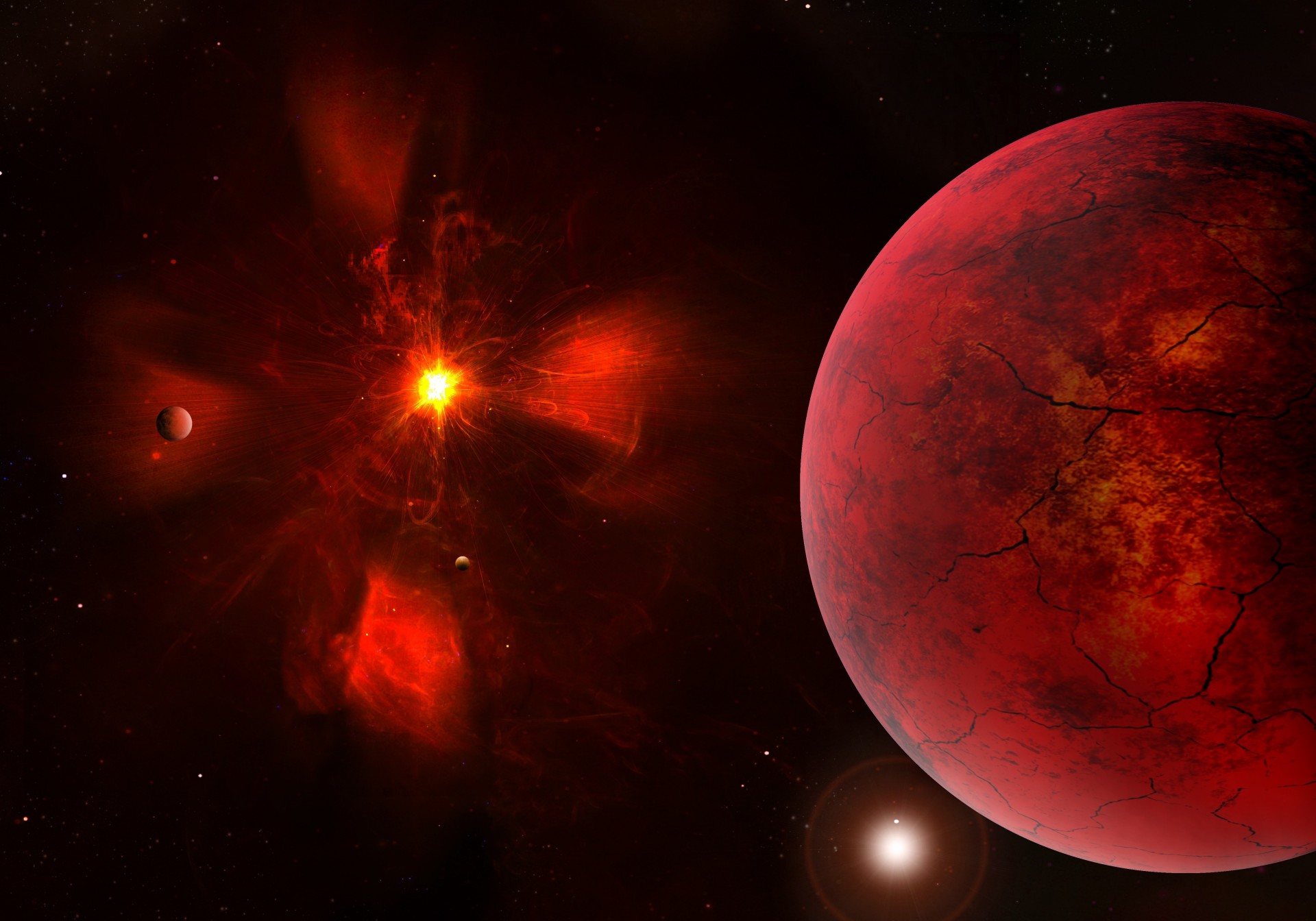 La superficie del pianeta sullo sfondo di diversi satelliti
