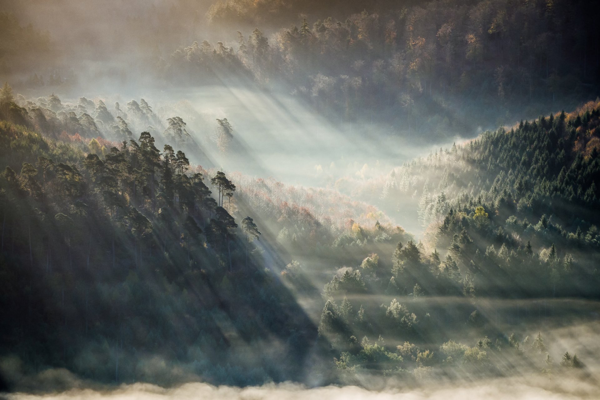 Natura in autunno con vista sulle montagne e nebbiaNatura in autunno con vista sulle montagne e nebbia