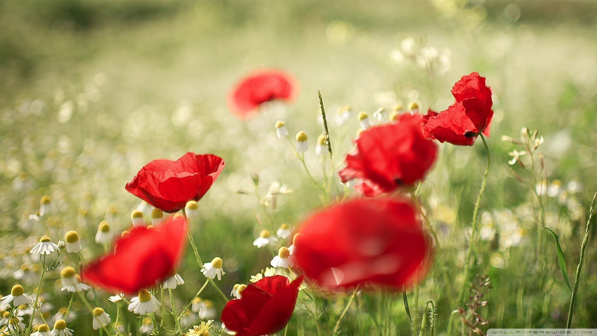 Papaveri scarlatti luminosi in un prato contro il cieloPapaveri scarlatti luminosi in un prato contro il cielo
