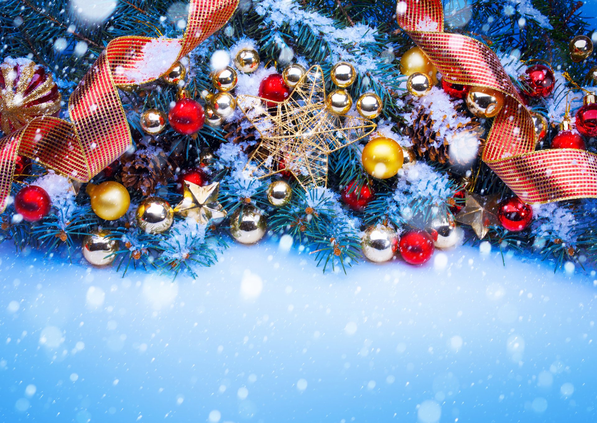 Decorazioni natalizie a forma di palline dorate e rosseDecorazioni natalizie a forma di palline dorate e rosse