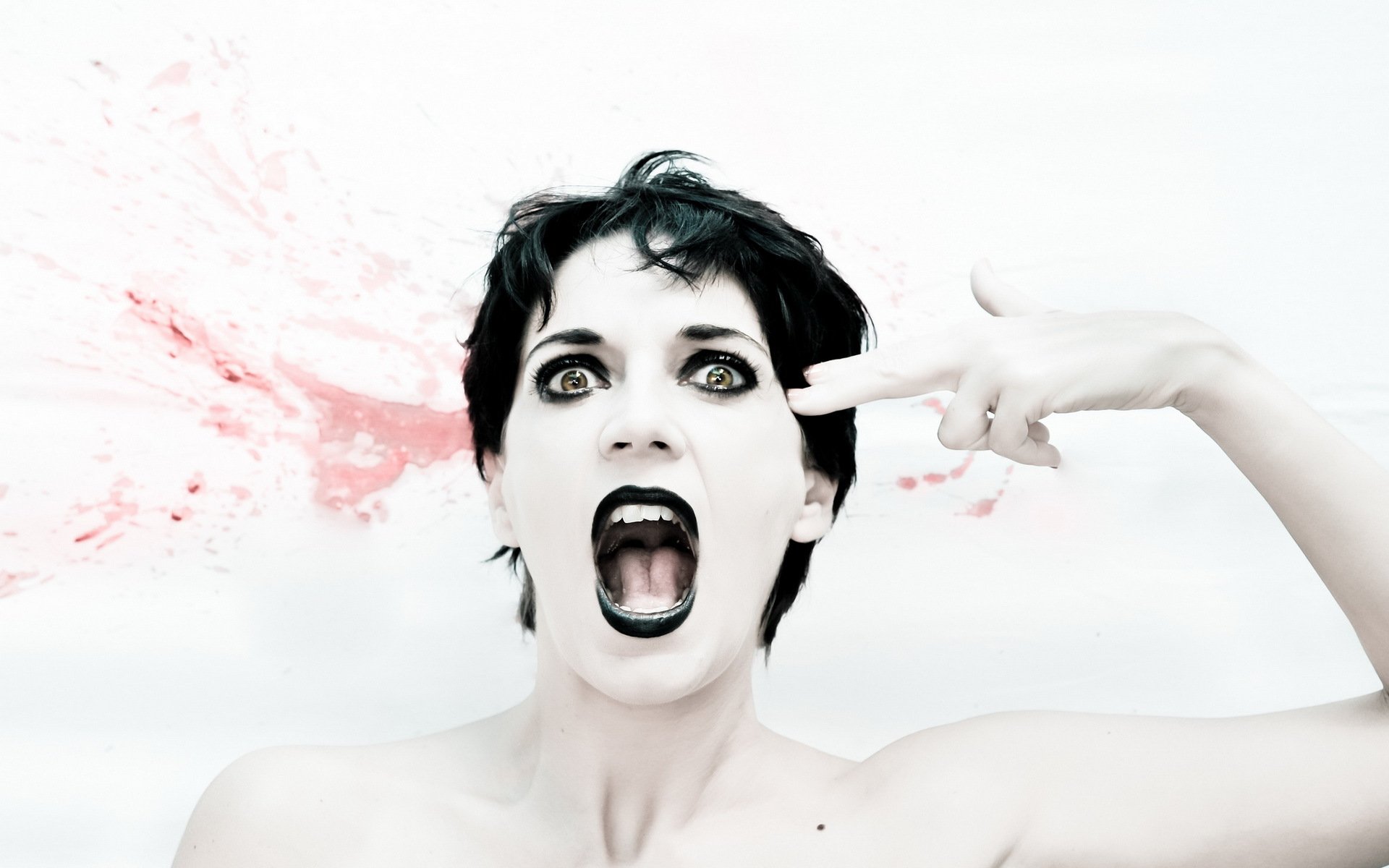 Ragazza pallida con rossetto nero simula un colpo di ditaRagazza pallida con rossetto nero simula un colpo di dita