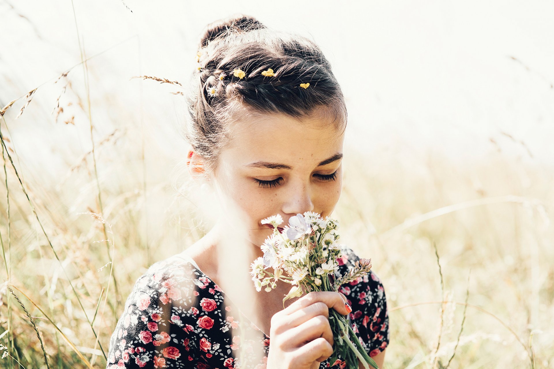 Ragazza che gioca con le bolle di sapone in estateRagazza che gioca con le bolle di sapone in estate
