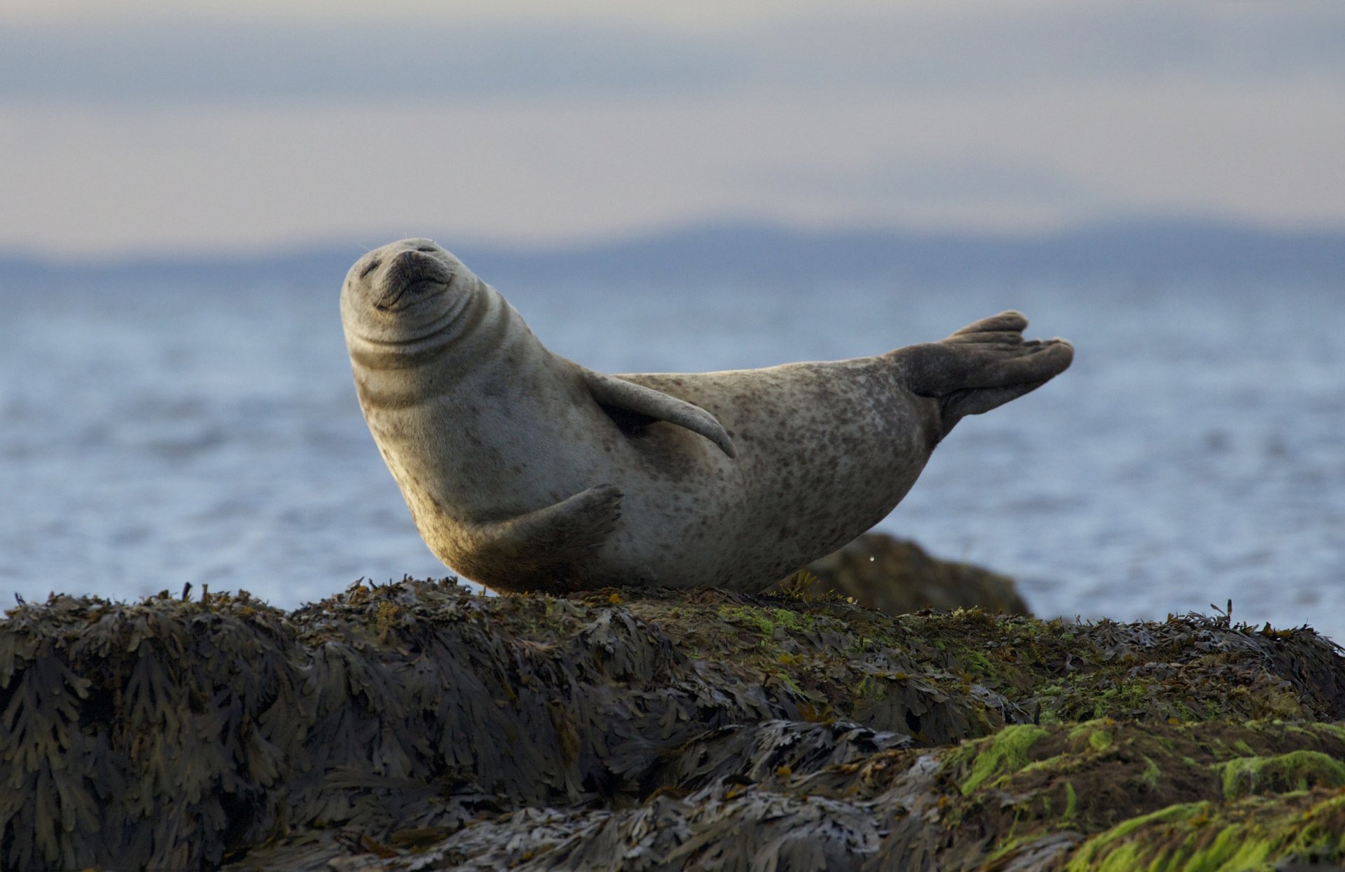Sorriso di foca. foca sulla spiaggia. foca in posa sulle rocceSorriso di foca. foca sulla spiaggia. foca in posa sulle rocce